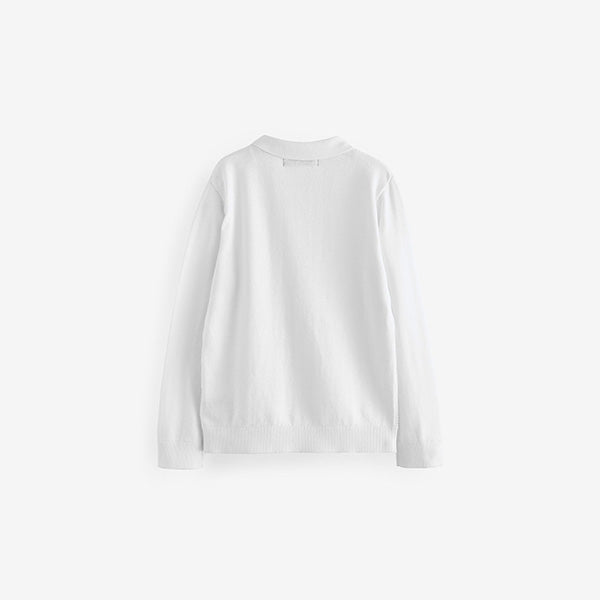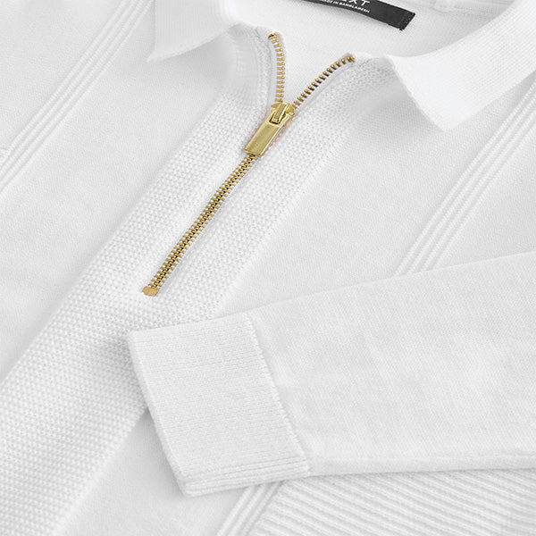 White Quarter Zip 100% Cotton Long Sleeve Knitted Polo Shirt