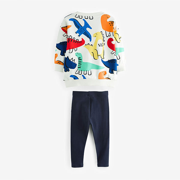Add to their nightweight selection, with this 2-piece rainbow dinosaur print pyjama set featuring a pure cotton long sleeve top with a crewneck collar and full-length leggings with an elasticated waistband.