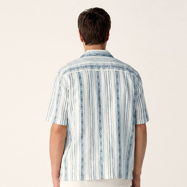 Blue/ White Short Sleeve Textured Stripe Shirt