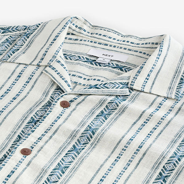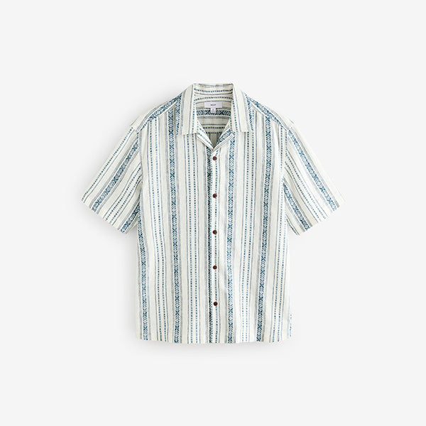 A neutral style statement, our textured stripe short sleeve shirt will elevate your warm weather wardrobe. Designed in a casual cotton-linen blend with a textured stripe and button down front and classic collar.