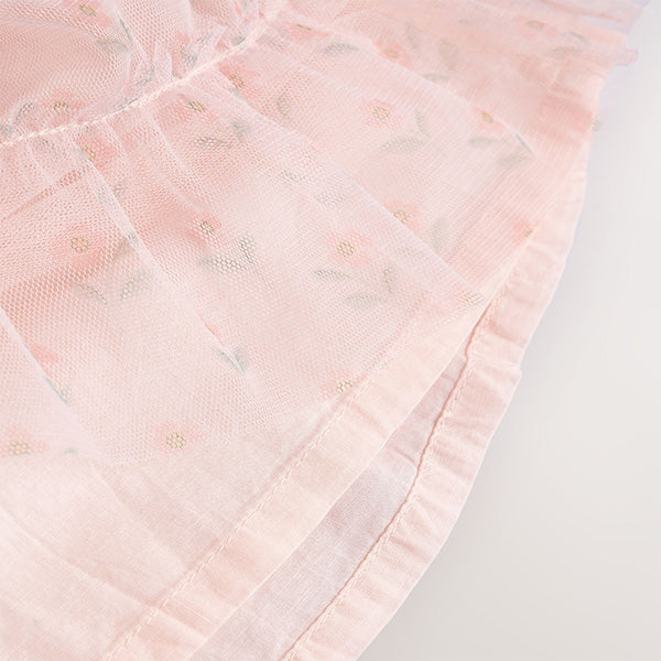 Let your little madam be the belle of the ball with this pink mesh baby dress. In a pretty tiered silhouette with a pretty floral print, this gorgeous dress features a full mesh skirt, frill sleeves and is fully lined.