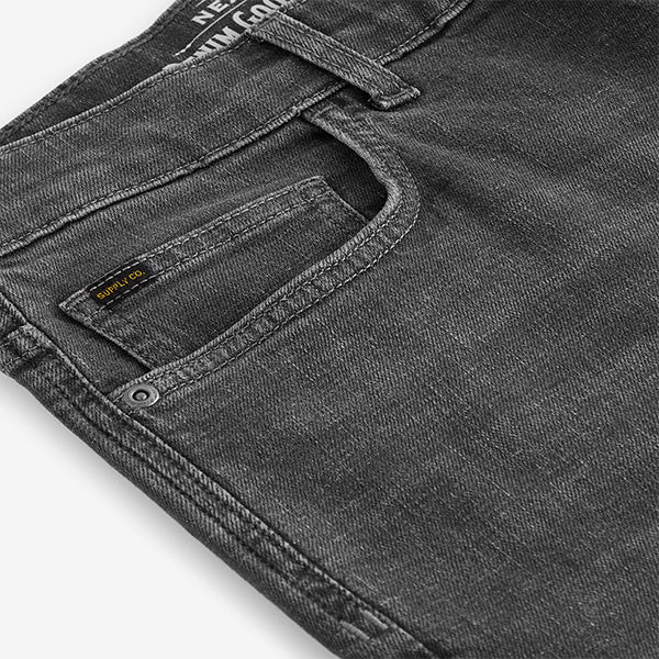 Charcoal Grey Straight Fit Vintage Wash Denim Jeans