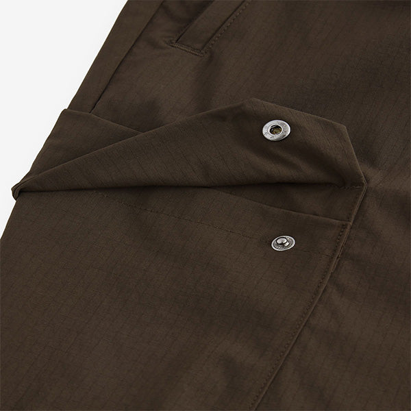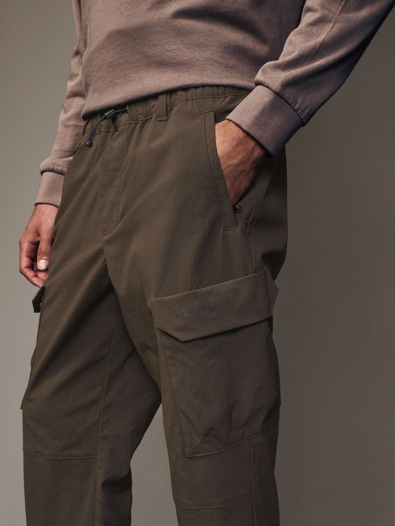 With a modern GORP utility design, these stylish chocolate brown technical trousers are made from a lightweight and durable ripstop fabric, with an adjustable toggle fastening to the waist and ankles, a D-ring to the belt loop for your keys, side and cargo pockets.
