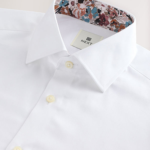 Our white slim fit textured twill shirt adds the right amount of charm to your look. Made from pure cotton with a slight textured finish, it's complete with button-down fastening, a cutaway collar and cuffed long sleeves.