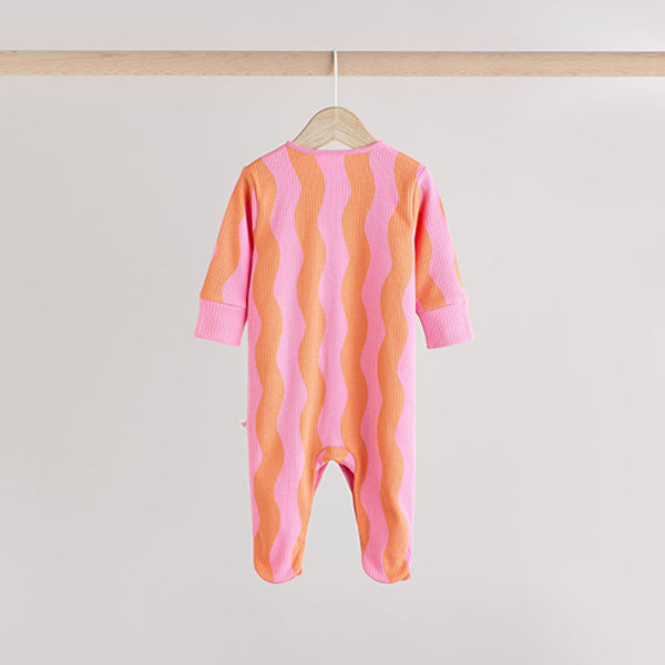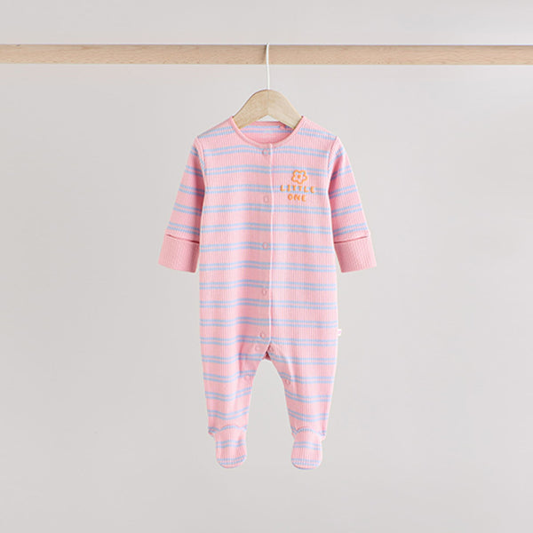 Comfortable and cosy, these multi-coloured pure-cotton sleepsuits come in a handy 3-pack, with a popper front fastening, inner lined feet, turn-back scratch mitts up to 3-6 months and an anti-slip sole print from 9-12 months.