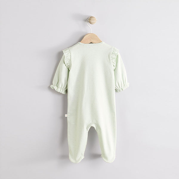 These adorable sleepsuit features a little sister embroidered and puff print design on the chest, made from pure cotton with a popper back fastening, inner lined feet and long sleeves, finished with an anti-slip sole print from ages 9-12 months and up.