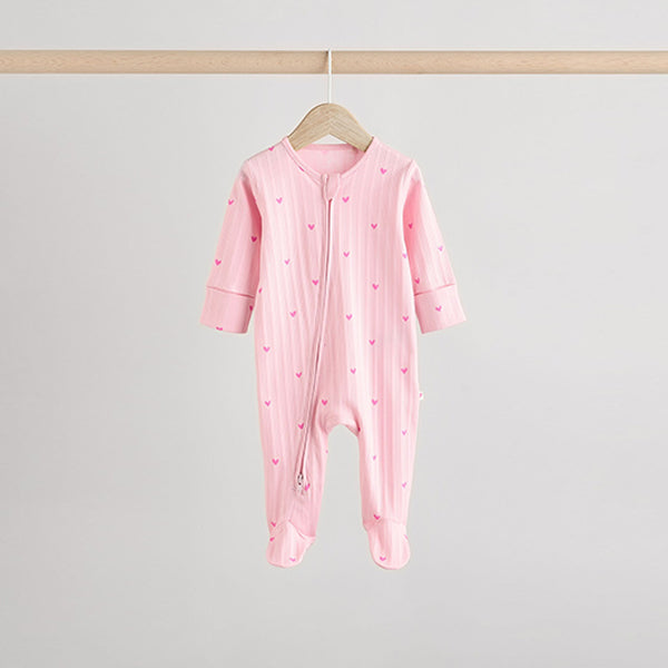 Pink 3 Pack Two Way Zip Baby Sleepsuits (0mths-2yrs)
