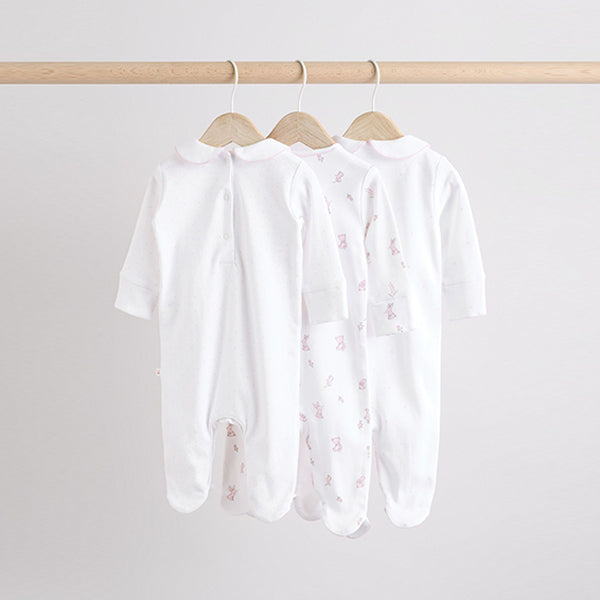 • Load image into Gallery viewer, White Collar 3 Pack Baby Sleepsuits