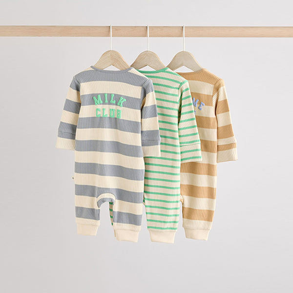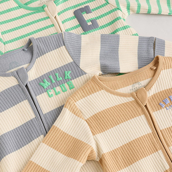 Milk Club Neutral 3 pack Baby Two Way Zip Footless Cotton Sleepsuits