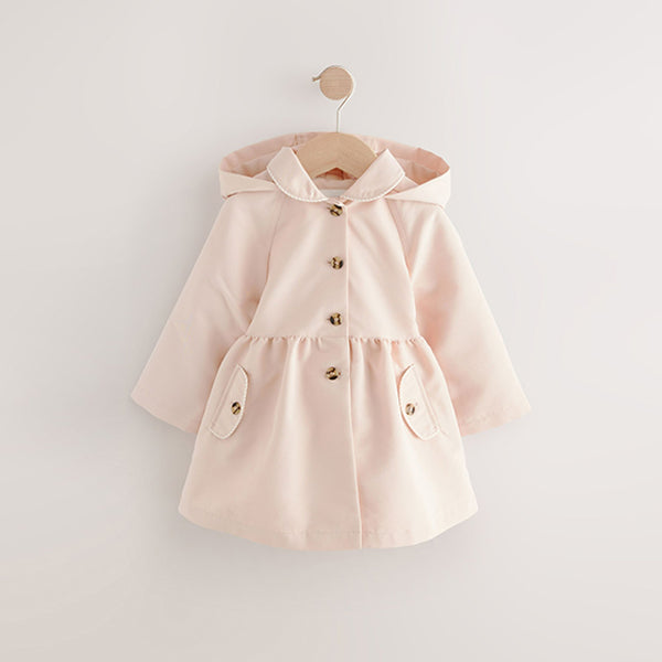 A sweet addition to their new season wardrobe, our powder pink trench coat is an outfit must. Crafted from shower resistant fabric, featuring striped piped edging, lining and hood, this pastel piece is the perfect layer to take her from the park to play-dates in style.