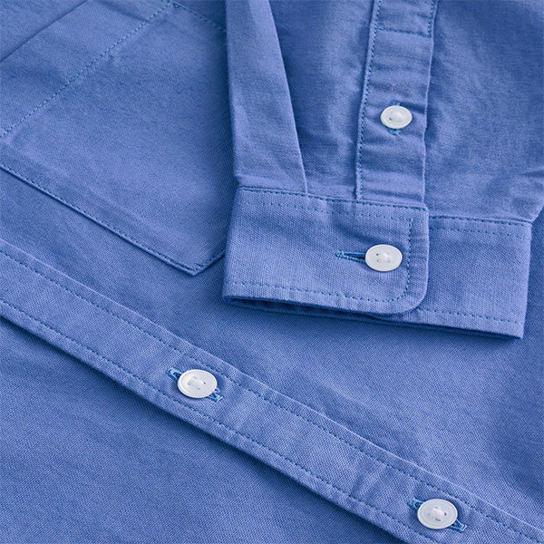 Elevated their everyday looks with this bright blure relaxed fit shirt, made in an Oxford weave from a cotton-rich fabric with a button-up fastening, a classic collar and long sleeves with a single cuff, finished with a patch pocket and straight hem.