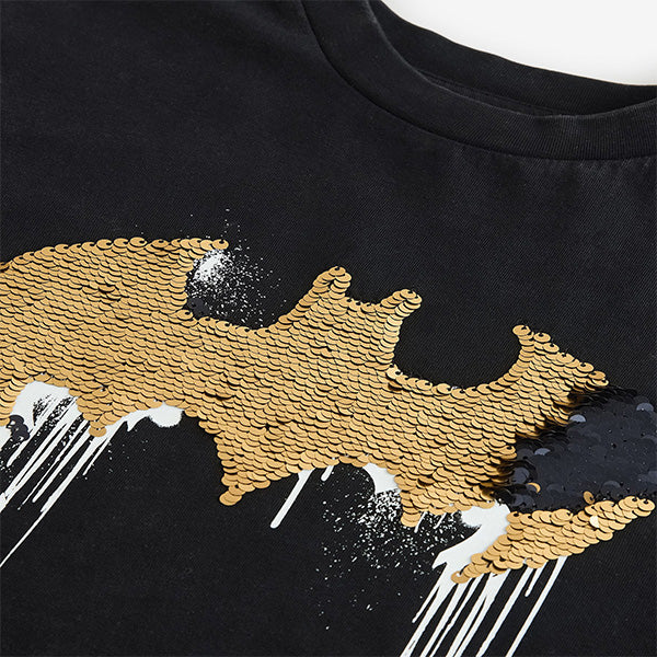 This T-Shirt is perfect for any superhero, featuring an officially licensed Batman logo on the chest with a flippy sequin design, set against a pure cotton T-Shirt.