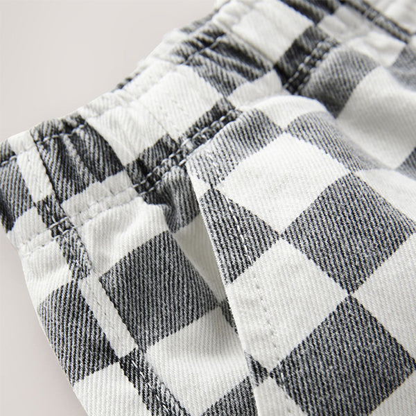 These stylish and easy to wear black and white checkerboard trousers are made from pure cotton, featuring a wide leg and an elasticated waistband, finished with side pockets. Perfect for everyday wear, simply pull-on and pair with their favourite sweatshirt.