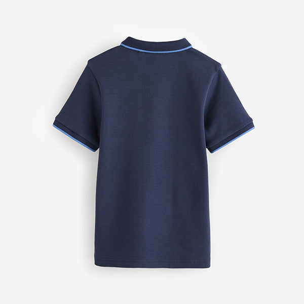 Navy/White 100% Cotton Quarter Zip Colourblock Short Sleeve Polo