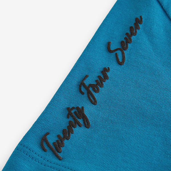 Teal Blue Football Regular Fit Short Sleeve Graphic Print T-Shirt