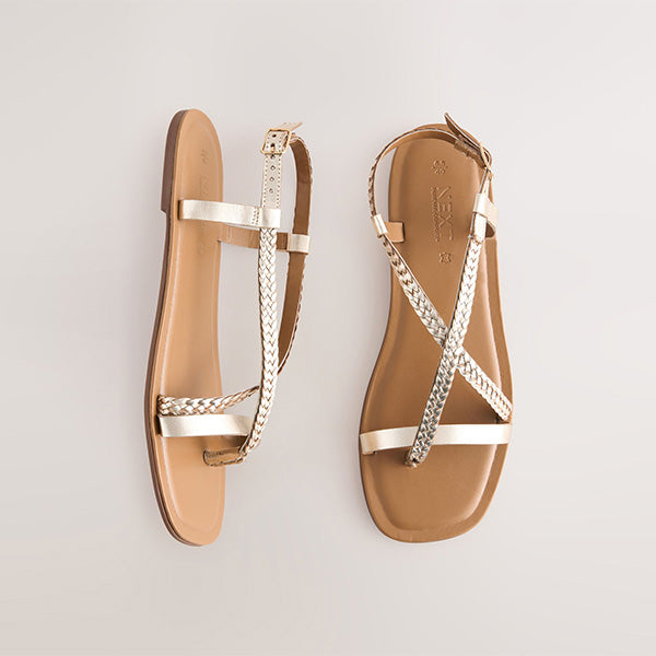 Step into summer with these rose gold leather plait toe thong sandals. With a leather upper, these strappy sandals feature a plaited design for added texture and are complete with an adjustable buckle fastening.