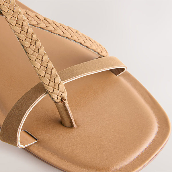 Step into summer with these tan brown leather plait toe thong sandals. With a leather upper, these strappy sandals feature a plaited design for added texture and are complete with an adjustable buckle fastening.