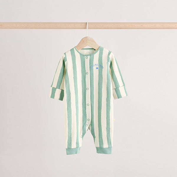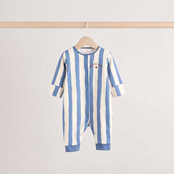 Cream/Blue Baby Footless Sleepsuits 3 Pack