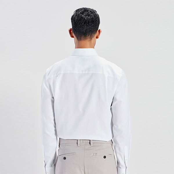 Perfect for a more formal look, this easy-to-iron and crease-resistant Oxford shirt in white has a button-up fastening and a button-down collar. Whether for a day in the office or an evening out, this smart yet comfortable shirt provides a great option.