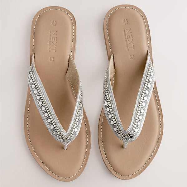 Metallic Standard/Wide Fit Beaded Toe Thong Sandals