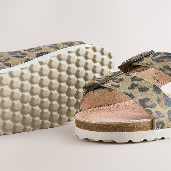 Animal Printed Standard Fit (F) Touch Fastening Strap Corkbed Sandals