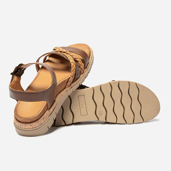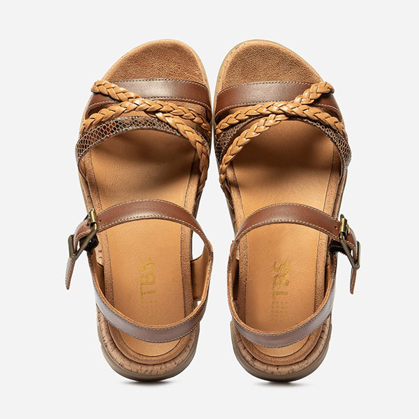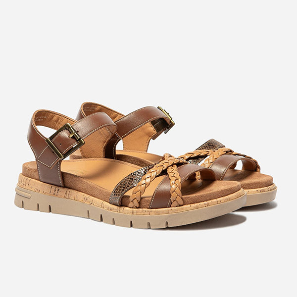 Discover these flat leather sandals with a nice play on materials and colors.