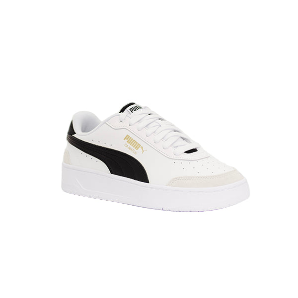 Unleash your inner trendsetter with these tennis-inspired kicks. Featuring a leather base, perforated vamp, and metallic eyelets, they blend court and street vibes effortlessly. The debossed PUMA branding and sleek formstrip add the perfect finishing touch.