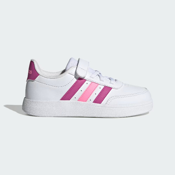 Kids move freely in these lightweight sneakers. A flexible rubber outsole provides the grip and durability kids need for hours spent at the playground or on the tennis court. These kids' adidas sneakers pull on easily thanks to stretchy laces while a hook-and-loop top strap secures the fit. Let the fun begin.
