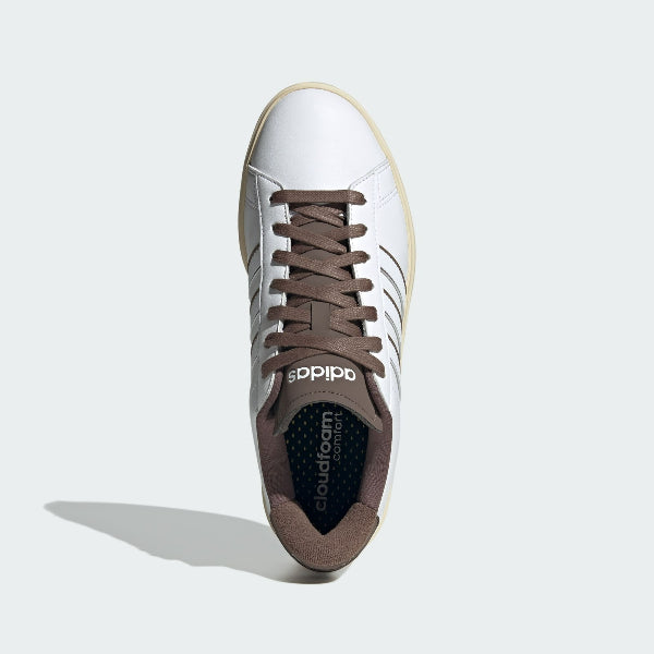The Grand Court 2.0 shoes from adidas are a modern reinterpretation of a classic style. With a smooth synthetic leather upper, this pair blends retro and contemporary design. The Cloudfoam midsole cushions every step so you can stay comfortable while making a style statement.