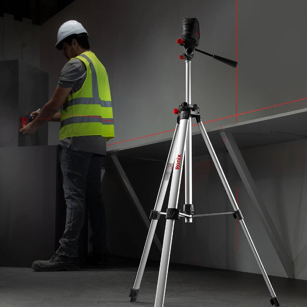Laser tripods are sturdy support structures designed to hold laser leveling tools or devices. They provide a stable platform for accurate and precise measurements in various industries, including construction, surveying, and engineering. Laser tripods typically feature adjustable legs and a mounting plate or clamp to securely hold the laser device. Made from aluminum and plastic and with a maximum load capacity of 5kg, Ronix RH-9590 is a 1560mm long tripod that can help you aim your laser or other measurement devices in the right direction.