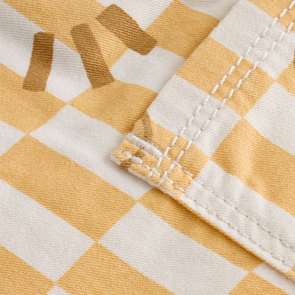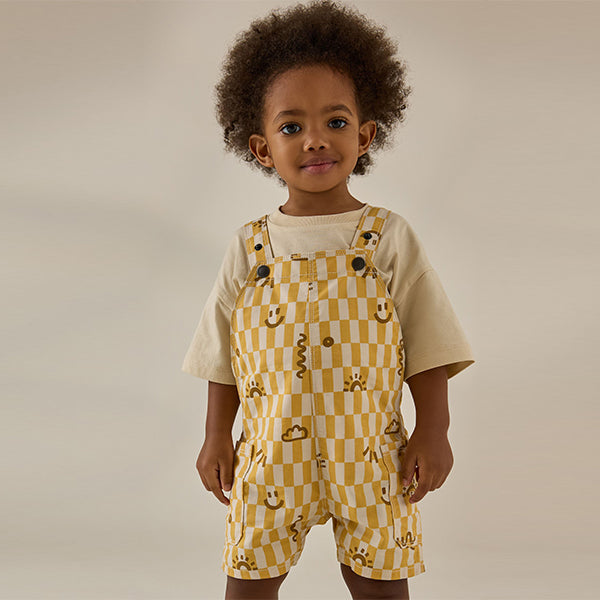 Brighten up his wardrobe with our yellow checkerboard dungarees. In pure cotton, these lightweight short dungarees are coated in a sunshine ready yellow check print and complete with popper fastening for easy wear.