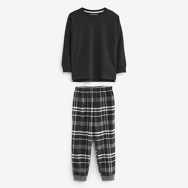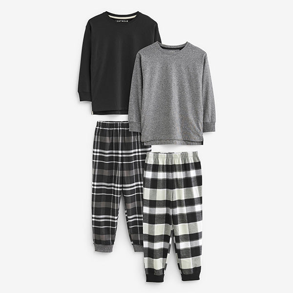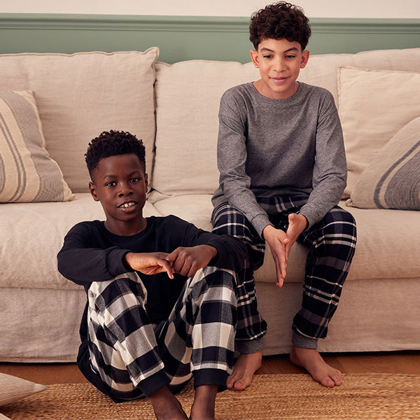 levate his nightwear essentials with our 2 pack of boy's monochrome long sleeve pyjamas. Crafted from pure cotton, this set of 2 pj's feature long sleeves tops and cuffed bottoms with an elasticated waistband. Comfy and cosy, they'll guarantee a great night's sleep.